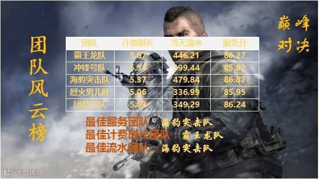恭喜海豹突击队获得最佳服务和最佳流水团队称号
