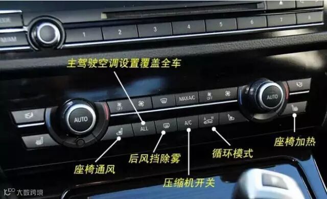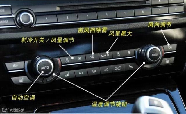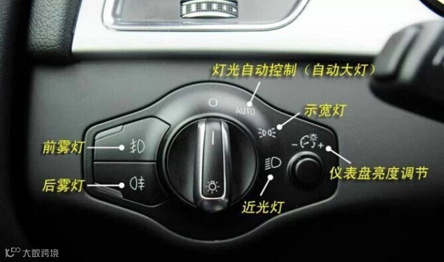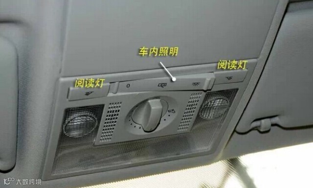 前座车顶控制区域。中间旋转按键是大众车型的天窗开启开关