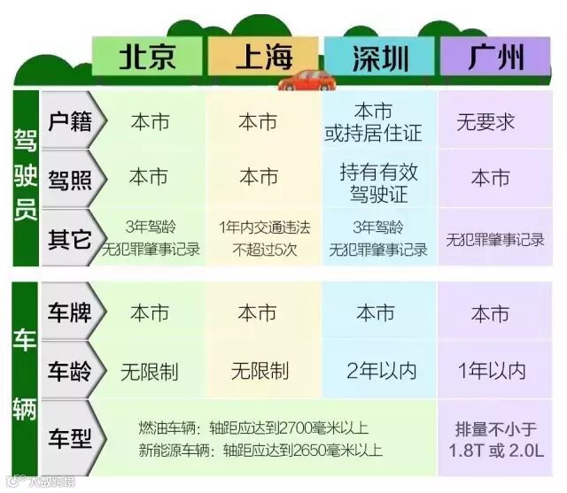 在广州的征求意见稿的中,我们看到了一些对网约车“难以理解”的要求。征求意见稿对车辆的排量以及轴距的限制,被认为不符合绿色出行的理念;规定运营的车辆需要为一年内新 车,而非鼓励私家车主从事顺风车或者合乘业务,被认为与“共享经济”的本质相悖。