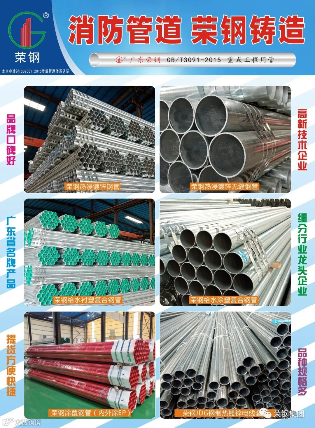 广东荣钢集团创建于1994年。广东荣钢管道科技有限公司位于佛山市三水区乐平镇新城大道南6号,厂房及仓储占地面积100亩,主要生产、经营“荣钢”牌消防级系列钢管(热浸镀锌消防钢管、热浸镀锌加厚钢管、热浸镀锌高压无缝钢管、EP环氧树脂涂覆钢管);“荣钢”牌给水系列钢管(承插式全自锚抗震型柔性接口钢管、给水衬塑复合钢管、涂塑复合钢管、内外涂塑复合钢管);以及“荣钢”牌镀锌钢制电线导管、四级热镀锌电线导管、电力涂塑钢管等系列产品 。“荣钢”牌钢管系列产品被广泛应用于消防、供水、通信、电力、市政排污、地铁、高铁、钢结构等建筑用钢管领域。