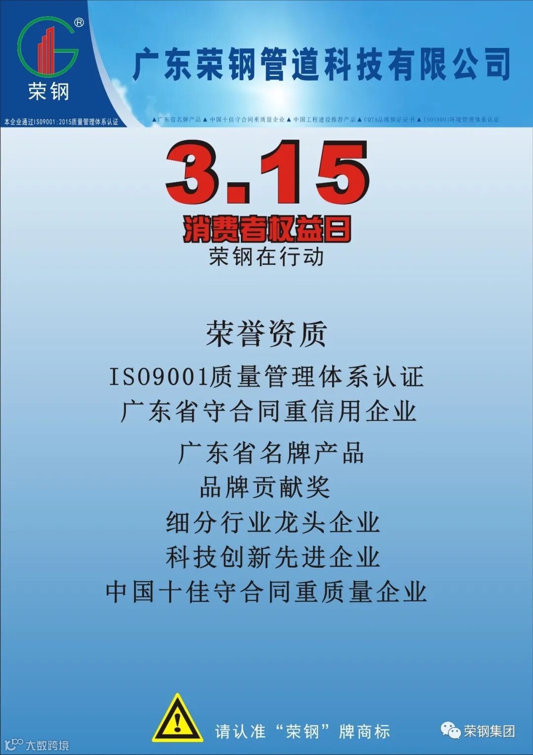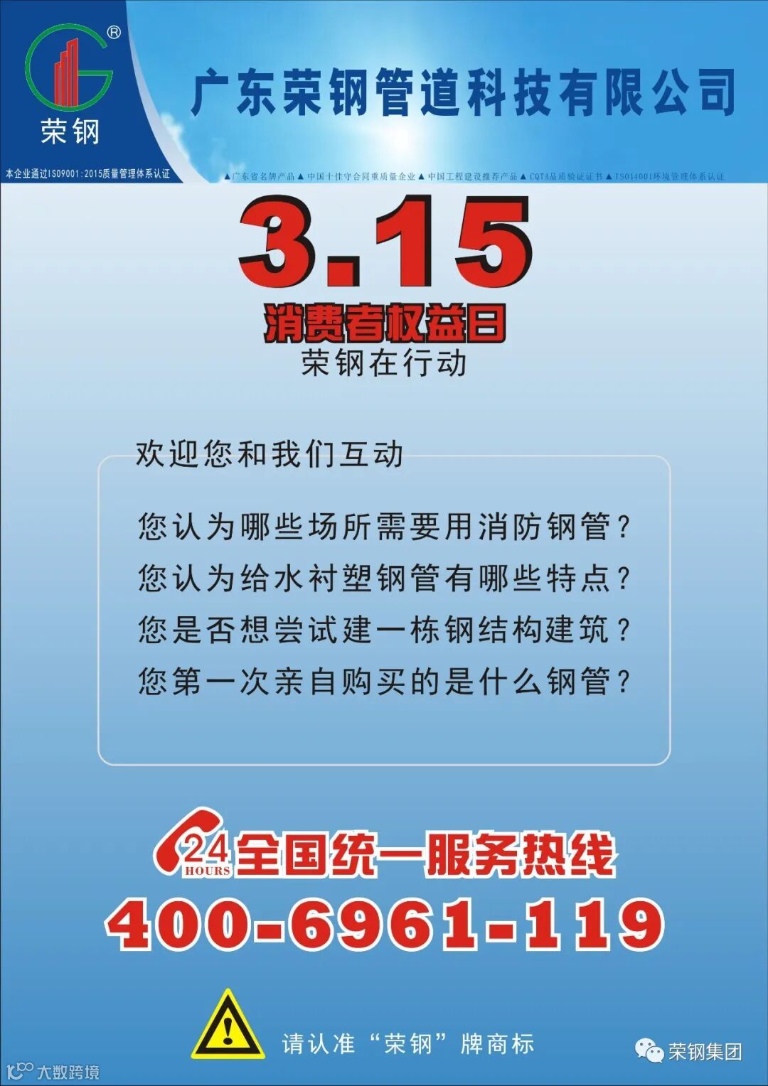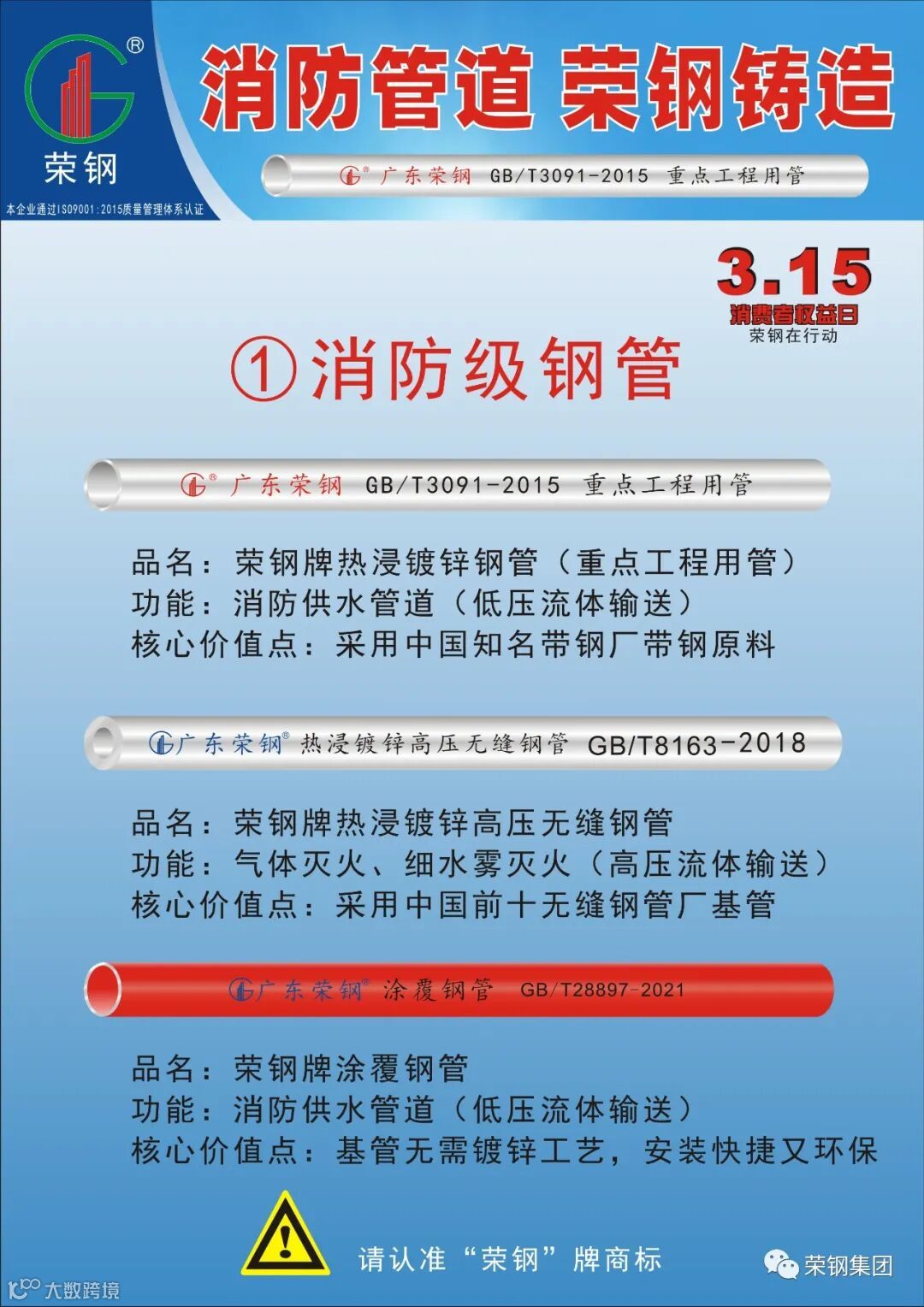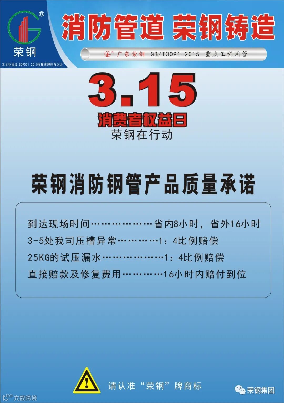 2023年全国消协组织消费维权年主题为“提振消费信心”。“荣钢”牌在消防、给水管道行业深耕多年,深知消费者在购买及使用过程中定会遇到各种各样的问题和困惑。去年各行业由于疫情的影响,使得经济受挫。今天,我们借着3.15“提振消费信心”的主题,顺带给大家引导建筑工程中用到的消防钢管、给水钢管、结构钢管的品牌消费。