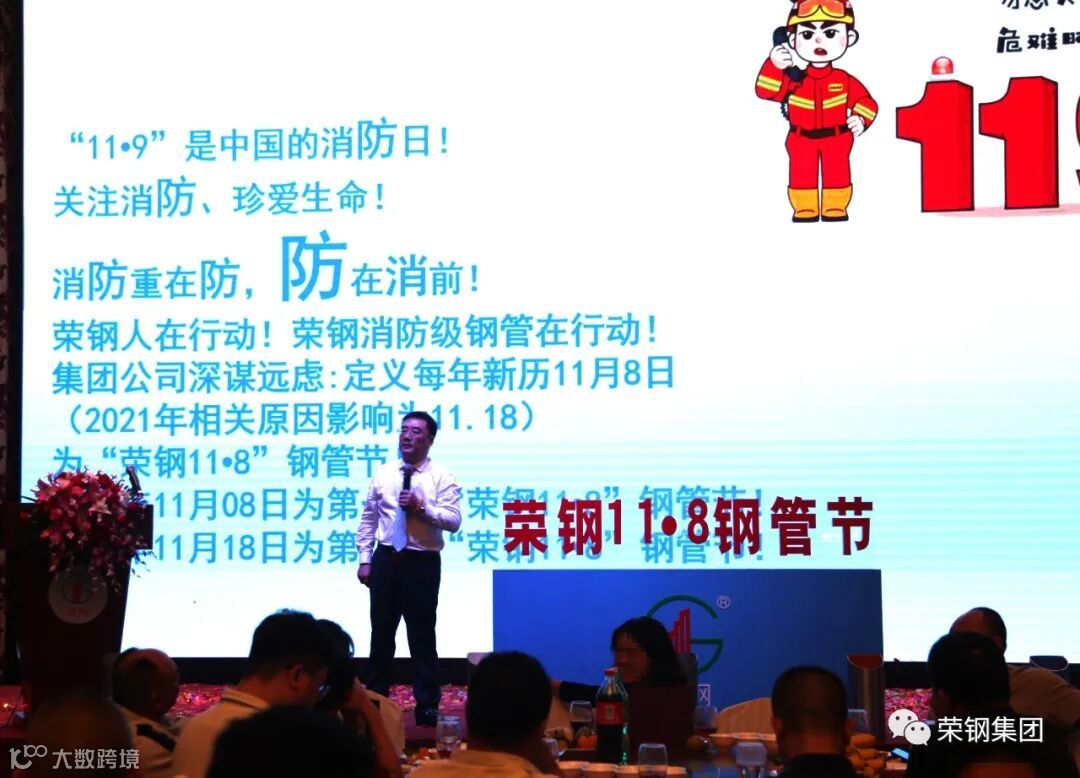 11.8钢管节,是由广东荣钢管道科技有限公司设立,也称“荣钢11.8钢管节”。这一天,全体荣钢人向“为天下绿色建筑,专业铸造每一支钢管”提供建筑用钢管服务的“行业从业者”致敬。消防钢管在消防安全系统中扮演着重要的角色,消防重在防,防在消前。汇聚钢管行业人士,共同倡导关注消防、珍爱生命。