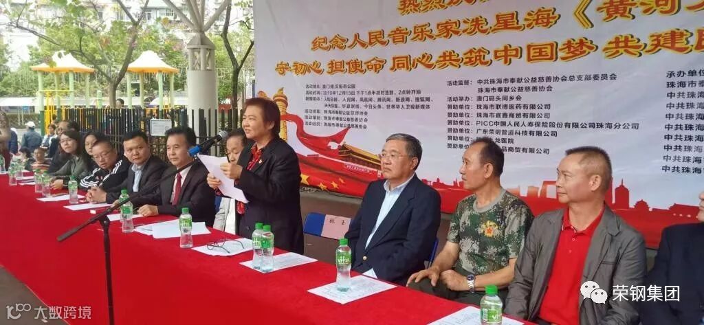 澳门码头同乡会、广东荣钢管道科技有限公司、珠海九龙医院、赵易元博士、珠海市坛品商贸有限公司、PICC中国人民人寿保险股份有限公司珠海分公司、珠海市联博医药有限公司、珠海市宜鑫商贸有限公司、珠海市坛品商贸有限公司、感谢以下承办单位珠海市奉献公益慈善协会、中共珠海市奉献公益慈善协会总支部委员会、中共珠海市奉献公益慈善协会支部委员会、中共珠海市服务妇孺残疾人协会支部委员会、中共珠海市服务老年人协会支部委员会、中共珠海市传统文化促进会支部委员会、中共珠海市义工协会支部委员会、中共珠海市酒店行业协会支部委员会、中共珠海市网络行业支部委员会、中共珠海市钢材协会支部委员会、珠海市奉献公益慈善协会、协会秘书处、协会艺术中心、协会艺术团;珠海市服务妇孺残疾人协会、协会秘书处、协会艺术团;珠海市服务老年人协会、协会秘书处、协会艺术团;珠海市义工协会、协会秘书处、协会艺术团;珠海市酒店行业协会、协会秘书处、协会艺术团;珠海市网络行业协会、协会秘书处、协会艺术团;珠海市传统文化促进会、协会秘书处、协会艺术团;珠海市钢材协会、协会秘书处、协会艺术团。“不忘初心”联合演出珠海市奉献公益慈善协会党支部艺术团珠海市香洲区翠香街道银桦社区长青艺、珠海市香洲区翠香街道沿河社区艺术团、珠海市香洲区翠香街道山寮艺术团、珠海市敬老爱幼志愿者协会开心舞蹈队、珠海同仁和公益慈善协会艺术团、珠海阳光公益协会艺术团、珠海市香洲区天山艺术团、珠海市香洲区海湾艺术团、香洲区老年大学钰海社区分校、珠海市应用技术专修学校、珠海市香洲区前山街道百合艺术团、珠海市理想大家庭公益慈善艺术团、珠海市香洲区翠香街道山寮诗歌沙龙、珠海市香洲区狮山街道红旗社区艺术团、吉大京剧社 、珠海维娜舞蹈艺术团、《海岸线文学》诗刊社、乐开花剧社、盛大金禧管乐团、前山福兴合唱团、枫叶红艺术团、前山歌咏队、珠海梅华牡丹旗袍艺术团、珠海市香洲区南屏镇梦之歌艺术团、珠海市义工协会艺术团、珠海市服务妇孺残疾人艺术团、珠海市网络行业协会艺术团、珠海市服务老年人协会党支部艺术团、珠海市酒店行业协会党支部艺术团、悦城社区歌咏队、炫酷时装舞蹈队、珠海市香洲区旗袍文化交流协会、珠海市香洲区旗袍文化交流协会、珠海市红十字志愿工作者协会、珠海市香洲区前山街道福石社区福康、珠海市香洲区旗袍文化交流协会旗典爱心艺术团、珠海市香洲区旗袍文化交流协会爵士舞艺术团、珠海市香洲区旗袍文化交流协会合唱艺术团、珠海市香洲区旗袍文化交流协会旗韵秀艺术团、珠海市香洲区旗袍文化交流协会古韵古典舞艺术团、珠海市香洲区旗袍文化交流协会国粹变脸艺术团、珠海市香洲区旗袍文化交流协会太极艺术团、珠海市香洲区旗袍文化交流协会夕阳红艺术团、珠海市香洲区旗袍文化交流协会梅花艺术团、珠海市香洲区旗袍文化交流协会知音艺术团、珠海市香洲区旗袍文化交流协会芳华戏曲艺术团、珠海市香洲区旗袍文化交流协会俏佳人时尚艺术团、珠海市香洲区旗袍文化交流协会香湾梦幻活力艺术团、珠海市香洲区旗袍文化交流协会福石舞蹈艺术团、珠海市钰远文化传播有限公司中澳夕阳红健身艺术团、珠海市钰远文化传播有限公司坦洲分会、中山市石歧居家养老中心心连心旗袍艺术团、中山市火炬旗袍艺术团、中山市东区和谐旗袍队、中山市东区兴中舞蹈队、中山市石歧居家养老服务中心旗袍班展示队、澳门广场健身舞蹈总会、天音乐团、守初心担使命、中共珠海市奉献公益慈善协会总支部委员会副书记、中共珠海市奉献公益慈善协会支部委员会书记:罗国新、中共珠海市奉献公益慈善协会支部委员会指导员:刘燕平、中共珠海市网络行业协会支部委员会书记:育 军、中共珠海市传统文化促进会支部委员会书记:黄少波、中共珠海市钢材协会支部委员会书记:刘宏斌/中共珠海市奉献公益慈善协会总支部委员:曾繁基/中共珠海市奉献公益慈善协会总支部委员:袁彩洪/中共珠海市奉献公益慈善协会总支部委员:张秀茂/协会代表珠海市网络行业协会法人会长:田福庆、珠海市钢材协会法人会长:余 忠、长协会秘书长,他们分别是:徐学海、庞秋莲、倪丽清、梁福琼、由姚玉书记带领总支部的罗月蓉队、欧阳队、庞秋莲队、黄佩队4个队的全体党员、流动党员、预备党员、发展对像、入党积极分子,一起上台宣誓。奏响国歌启动(黄河大合唱)