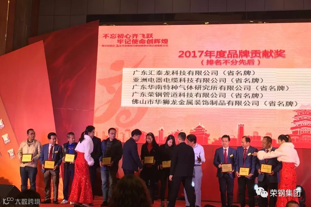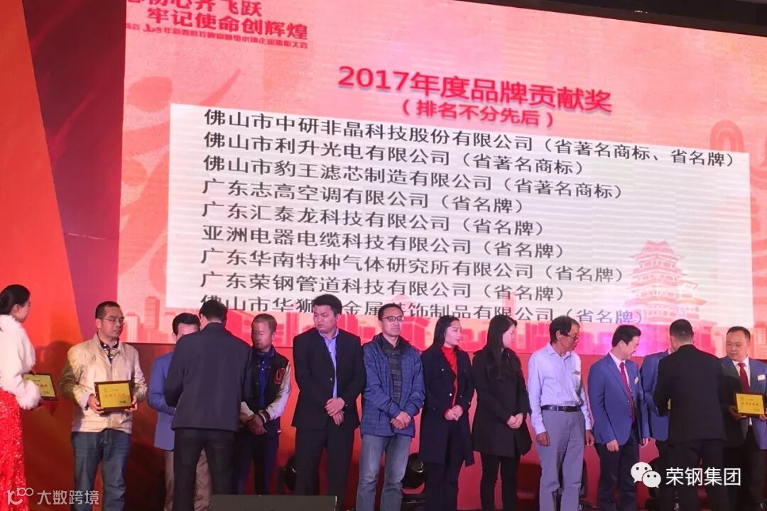其中广东荣钢管道科技有限公司荣获了由里水镇政府颁发的“2017年度品牌贡献奖”,由荣钢集团邓伟勤董事长上台接受里水质监局伍局长的颁奖授牌。广东荣钢集团成立于1994年,自2008年由广州从化搬迁扎根于佛山,至今已有将近10年历史。作为佛山的一份子,荣钢集团一直坚持发展荣钢牌系列钢管,以做优质管道作为公司的宗旨。能获得品牌贡献奖很感谢里水镇政府和里水总商会的支持与厚爱。今后荣钢集团将不负众望,为佛山知名品牌作贡献。