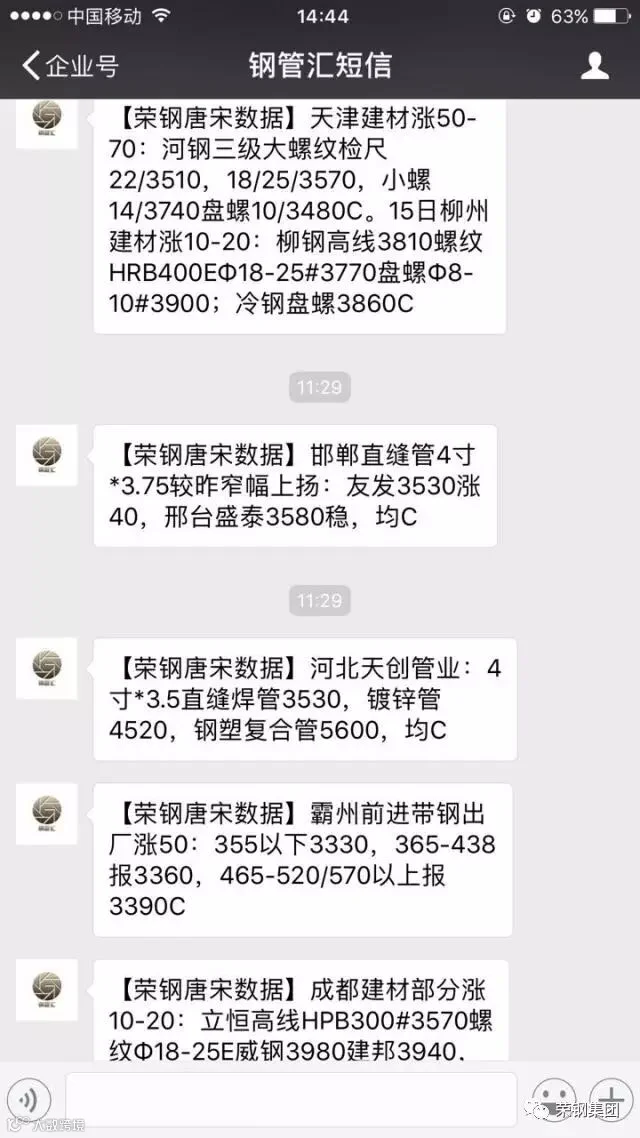 我们广东荣钢和河北唐宋联手打造的一个钢管汇信息平台,这个平台主要是以微信公众号平台发布,去让客户了解最新,最全面的全国各地的钢材走势,预测和各种镀锌管,焊管,带钢,钢坯,等各种出厂价格信息,若您有这方面需求,我们钢管汇都给您推送,微信(邹小姐)