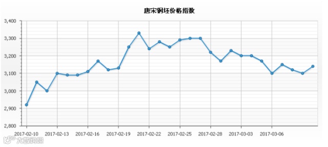 钢坯价格指数(TO1): 10日唐宋钢坯价格指数3140(出厂/出库),较昨涨40;月均价3158