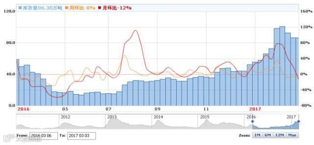钢坯库存量走势图:
