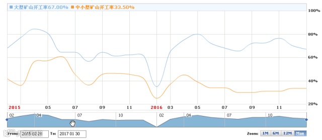 2015年2月-2017年1月国内矿山开工率走势图