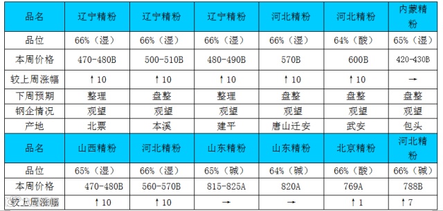 一:国内铁精粉钢企采购价格汇总
