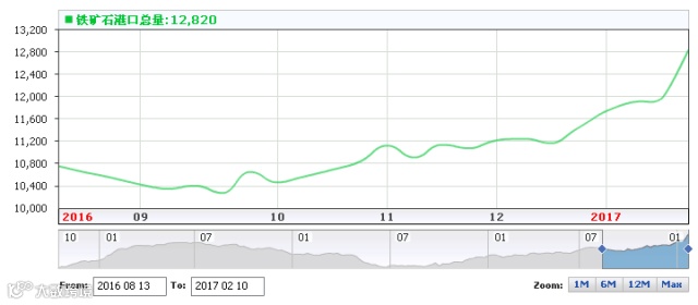 2016年8月-2017年2月港口矿石库存走势图