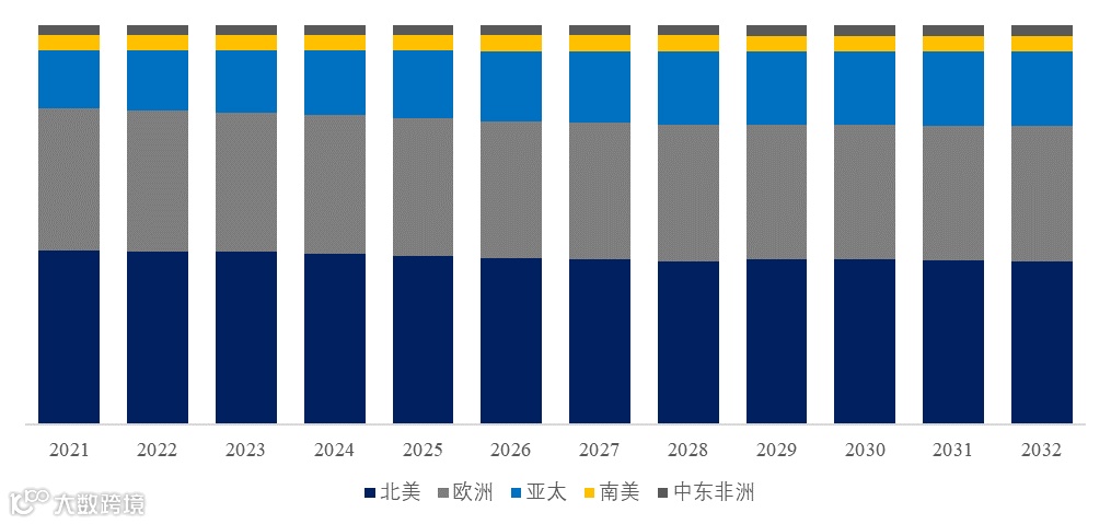 图. 全球动态血压监测仪规模,主要销售地区份额(按销售额)