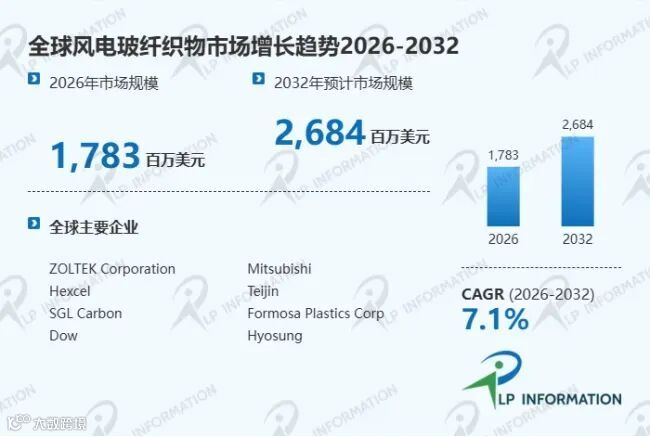 根据LP Information(路亿市场策略)最新调研报告显示,2025年全球风电玻纤织物市场规模大约为1669百万美元,预计2032年达到2684百万美元,2026-2032期间年复合增长率(CAGR)为7.1%。