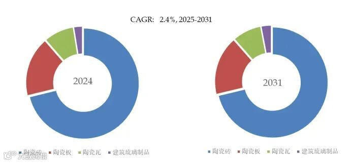 图. 建筑陶瓷,全球市场规模,按产品类型细分,陶瓷砖处于主导地位