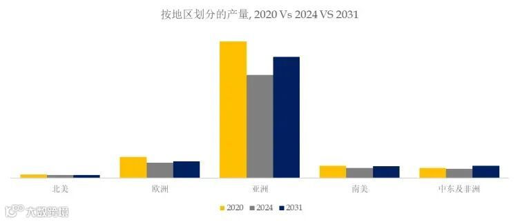 图. 全球建筑陶瓷规模,主要生产地区份额(按产量)