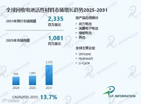 图. 回收电池活性材料,全球市场总体规模