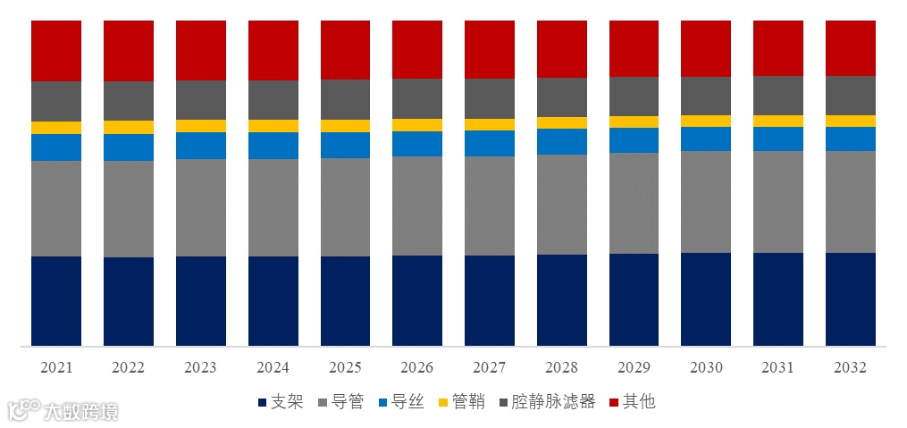 图. 外周血管介入,全球市场规模,按产品类型细分,支架处于主导地位