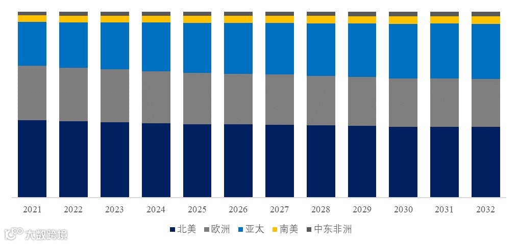 图. 全球外周血管介入规模,主要销售地区份额(按销售额)