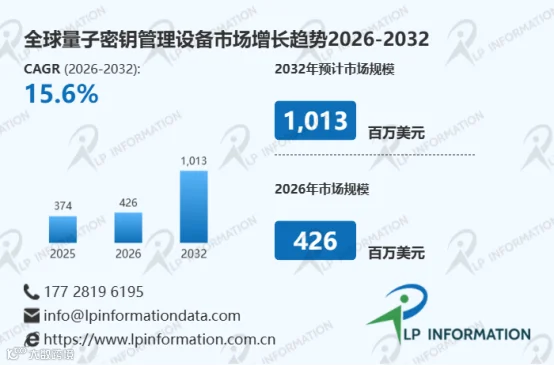 全球网络安全需求的集中爆发,成为量子密钥管理设备市场增长的核心驱动力。作为量子安全通信产业的核心组成部分,量子密钥管理设备的市场规模与行业发展深度绑定,呈现“稳步增长、占比提升”的发展特征。2025年全球量子密钥管理设备市场规模大约为374百万美元,预计2032年达到1013百万美元,2026-2032期间年复合增长率(CAGR)为15.6%。