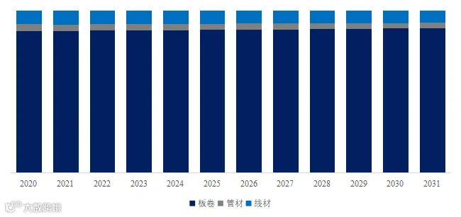 就产品类型而言,目前板卷是最主要的细分产品,占据大约88.0%的份额。