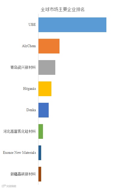 全球范围内氮化硅粉末生产商主要包括UBE、AlzChem、青岛瓷兴新材料、Höganäs、Denka等。2024年,全球前五大厂商占有大约85.0%的市场份额。