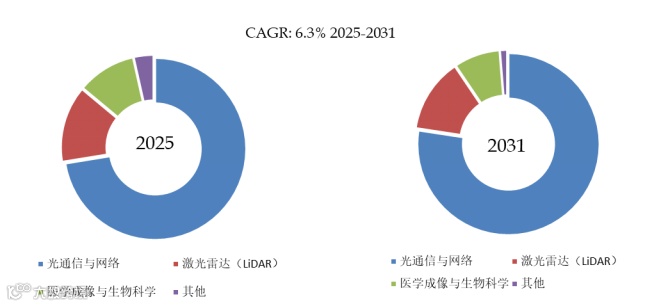 就产品应用而言,目前光通信和网络是最主要的需求来源,占据大约72.4%的份额。