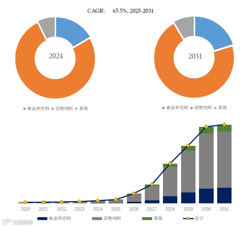 就产品类型而言,目前动物饲料是最主要的需求来源,占据大约76.3%的份额。