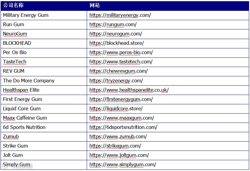 第十三章:重点分析全球咖啡因口香糖核心企业,包括企业的基本信息、产品及服务、收入、毛利率及市场份额、主要业务介绍以及最新发展动态等