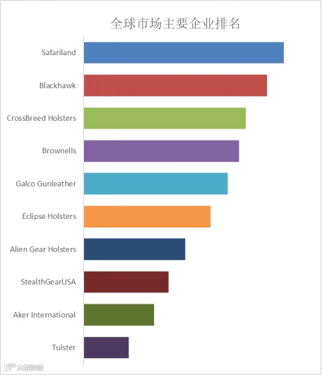 全球范围内,皮革手枪枪套主要生产商包括Safariland、Blackhawk、CrossBreed Holsters、Brownells、Galco Gunleather等,其中十大厂商占有大约35.32%的市场份额。