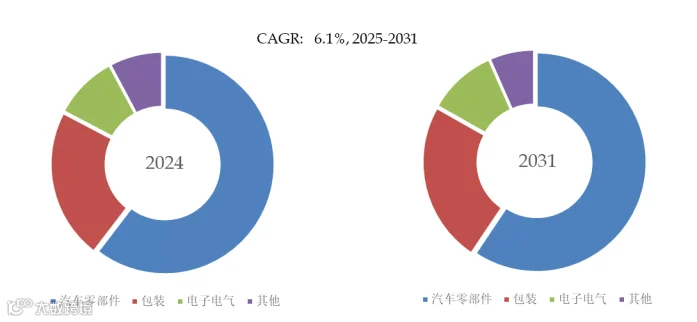 就产品类型而言,目前注塑级是最主要的细分产品,占据大约65.8%的份额。