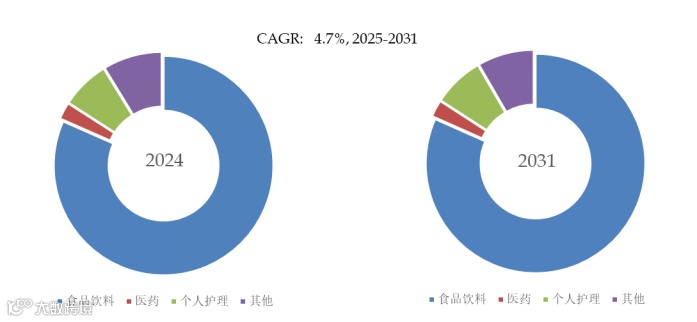 就产品应用而言,目前食品饮料是最主要的需求来源,占据大约81.6%的份额。