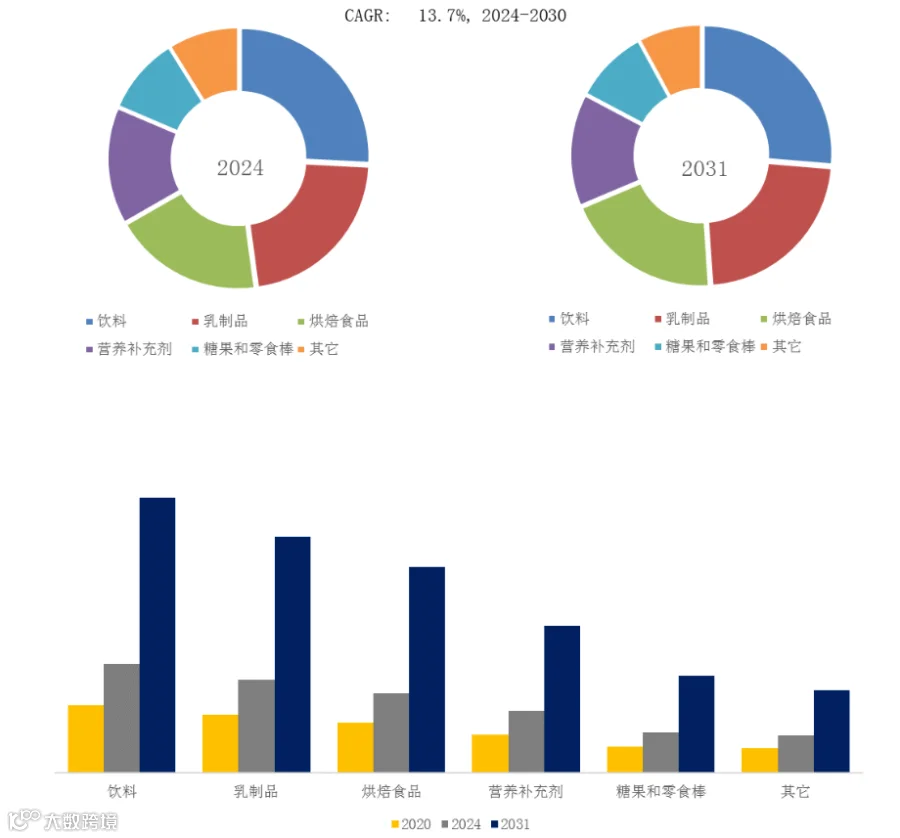 就产品应用而言,目前饮料是最主要的需求来源,占据大约25.8%的份额。