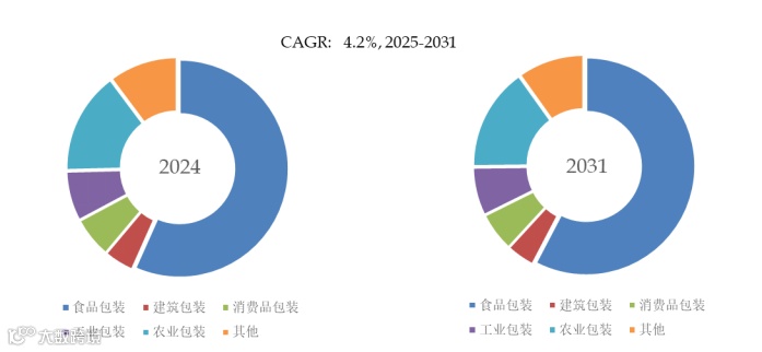就产品应用而言,目前食品包装是最主要的需求来源,占据大约56.7%的份额。