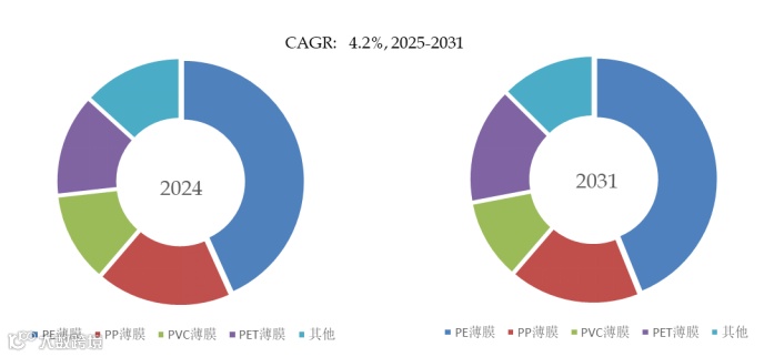 除了包装之外,非包装应用的扩展也刺激了市场增长。塑料薄膜在农业领域广泛用作地膜、温室覆盖物和青贮饲料包装,有助于提高作物产量和效益。在建筑领域,塑料薄膜可用作隔汽层、保护膜和隔热层;在医疗领域,塑料薄膜则用于一次性医疗器械、灭菌包装和防护罩。应用的多样性,加上全球基础设施建设和医疗保健投资的增长,确保了塑料薄膜需求长期稳定增长。
