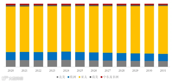 目前,亚太是最主要的消费市场,占据大约73%的市场份额。