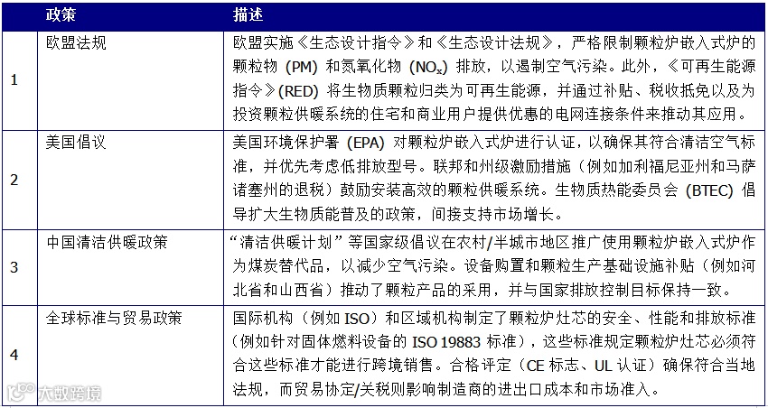 全球“双碳”目标和清洁供暖倡议创造了巨大的政策红利市场。在欧洲和北美等成熟市场,严格的排放法规(例如欧盟生态设计指令、美国环保署认证)加速了传统高污染供暖设备的淘汰,高效低排放的颗粒炉灶成为重要的替代选择。此外,欧盟可再生能源指令 (RED) 将生物质颗粒归类为可再生能源,以及其他地区的类似激励措施降低了用户的采用成本,推动了住宅和商业升级的持续需求。