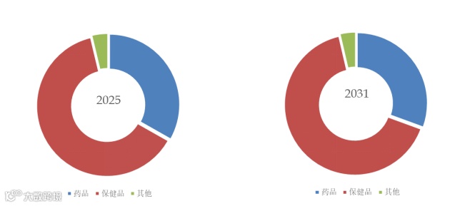 就产品应用而言,目前保健品是最主要的需求来源,占据大约63.1%的份额。