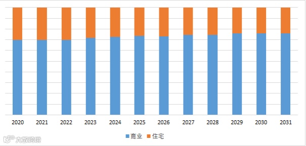 就产品应用而言,目前商业是最主要的需求来源,占据大约70%的份额。