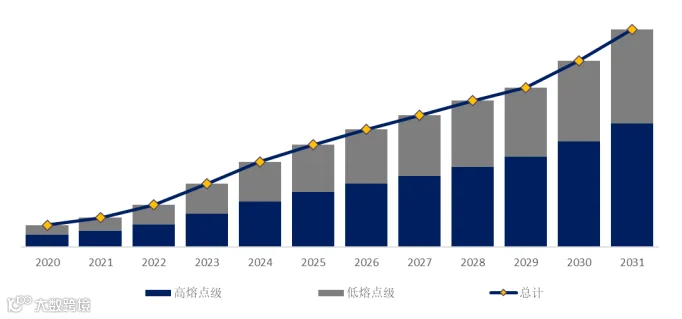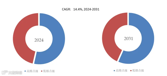就产品类型而言,目前高熔点级是最主要的细分产品,2025年占据大约53.9%的份额。