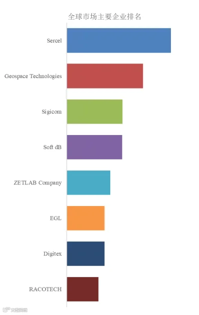 全球范围内,数字检波器主要生产商包括Sercel,Geospace Technologies,Sigicom,Soft dB,ZETLAB Company等,其中前五大厂商占有大约38.66%的市场份额。