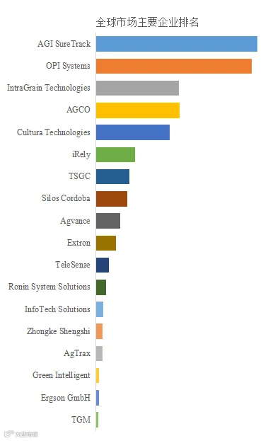 全球范围内,粮仓管理解决方案主要生产商包括AGI SureTrack, OPI Systems, IntraGrain Technologies, AGCO, Cultura Technologies等,其中前五大厂商占有大约44.87%的市场份额。