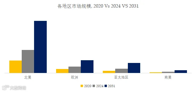 从地区来看,北美在2024年拥有最大的市场份额,占比63.7%,并将在未来几年保持稳定增长。欧洲拥有16.7%的市场份额,仍将发挥不可忽视的重要作用。亚太地区发展迅速,2024年市场份额为12.1%,到2030年将达到12.5%。南美、中东和非洲在全球市场中也发挥着重要作用。