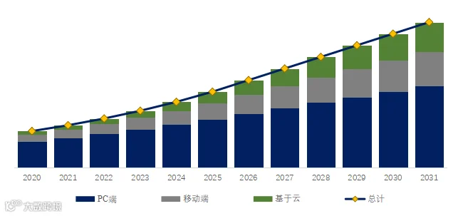 就产品类型而言,目前PC端是最主要的细分产品,2025年占据大约63.4%的份额。