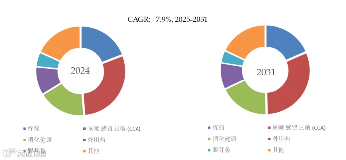 就OTC产品类型而言,目前咳嗽 感冒 过敏 (CCA)是最主要的细分产品,占据大约29.6%的份额。