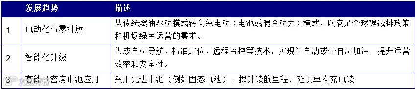 未来几年,随着更多机场对机队进行现代化改造以及电动航空基础设施的扩展,预计电动加油机市场将经历显著增长。未来的发展趋势将包括与智能充电系统、模块化电池更换技术以及混合动力或全自动加油车辆的集成,使电动加油机成为下一代可持续机场运营的标准组成部分。