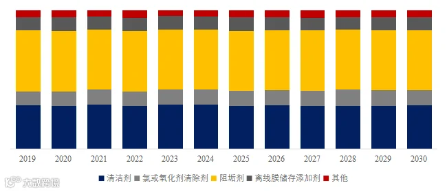 就产品类型而言,目前阻垢剂是最主要的细分产品,占据大约43.3%的份额。