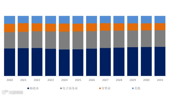 就产品类型而言,目前邮政业是最主要的需求来源,占据大约44.25%的份额。