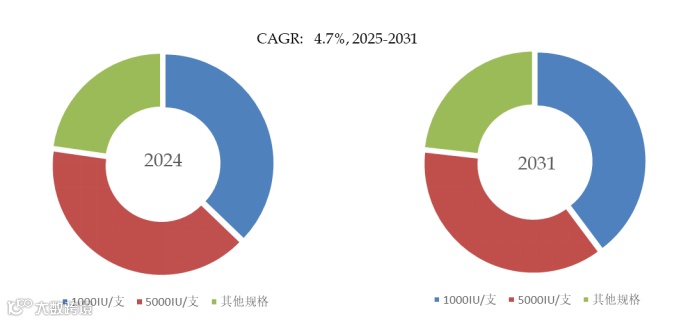 就产品类型而言,目前5000IU/支是最主要的细分产品,占据大约40%的份额。
