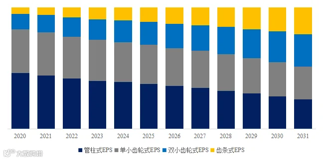 就产品类型而言,目前管柱式EPS是最主要的细分产品,占据大约38.7%的份额。