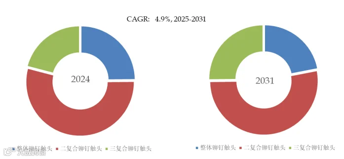 据路亿市场策略(LP Information)调研团队最新报告《全球铆钉型电触头市场增长趋势2025-2031--LP Information》显示,2025年全球铆钉型电触头市场规模为5.44亿美元,预计2031年将达到7.2亿美元,未来几年年复合增长率CAGR为4.9%。