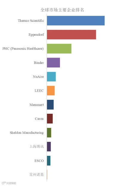 全球范围内,二氧化碳培养箱主要生产商包括Thermo Scientific、Eppendorf、PHC (Panasonic Healthcare)、Binder、NuAire等,其中前五大厂商占有大约69.16%的市场份额。
